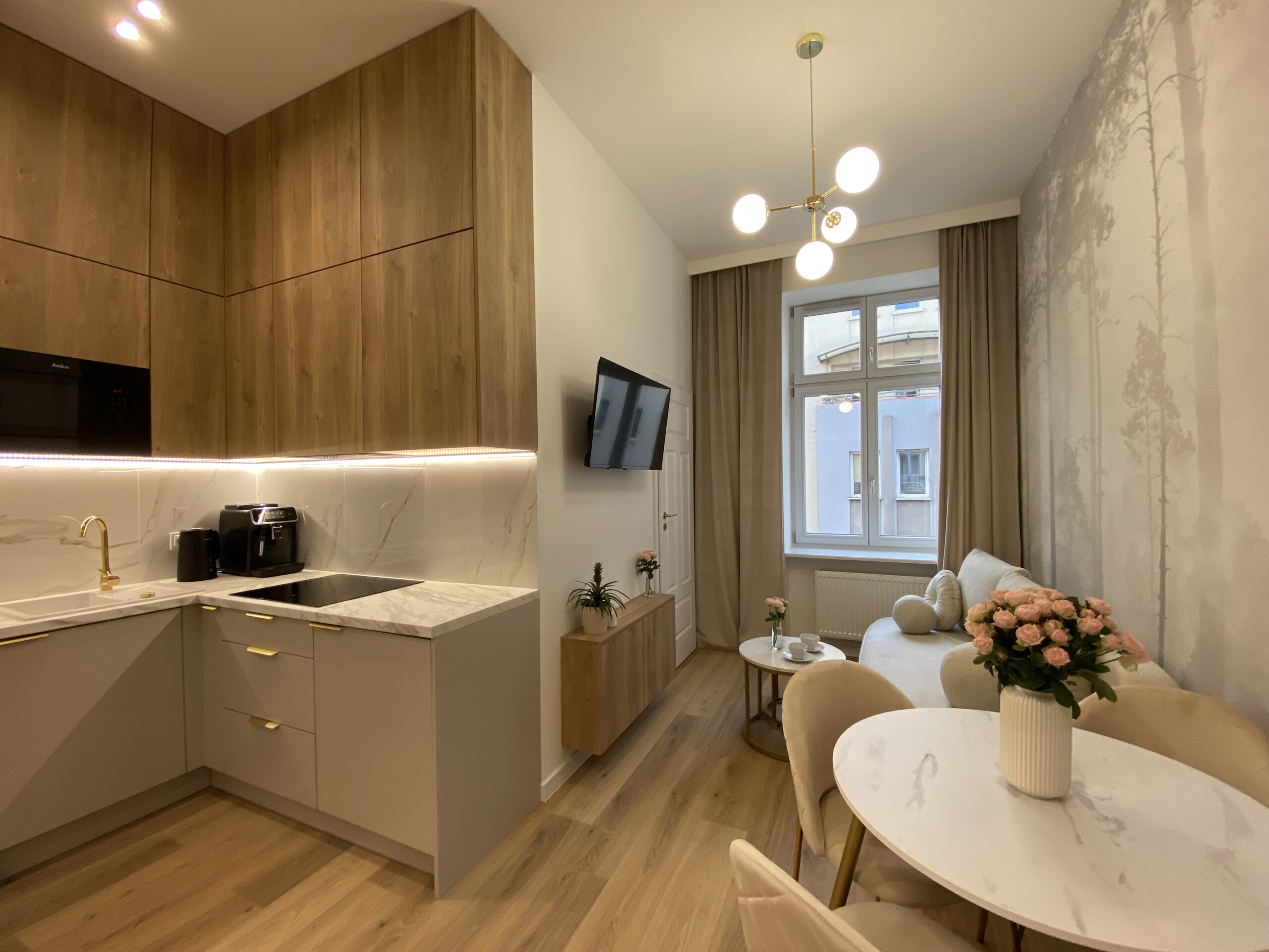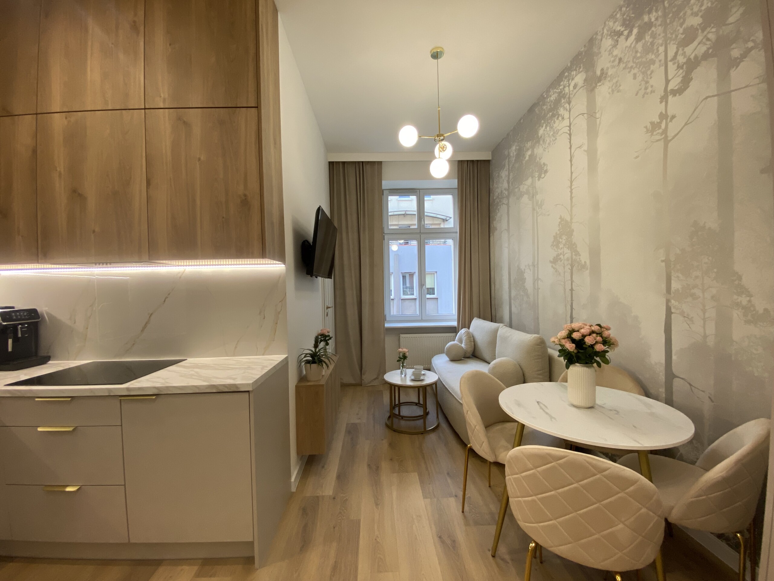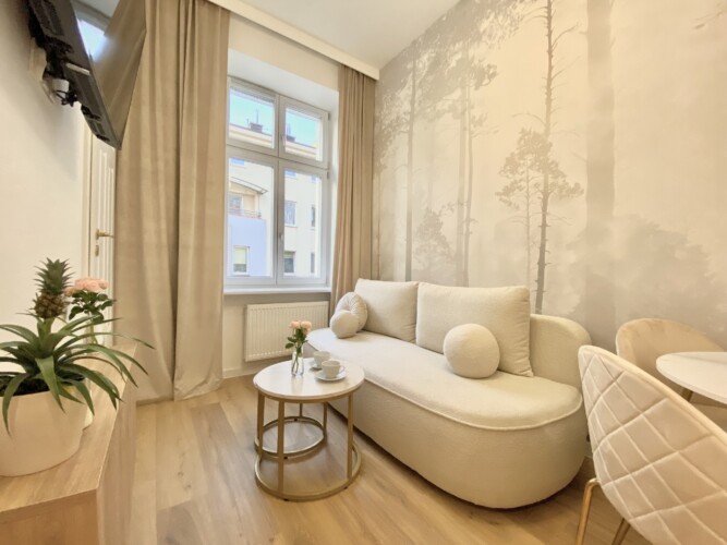 Apartament Nawrot 13 City Vibe by LookAp to nowoczesny apartament powierzchni 25 m2 na pierwszym piętrze odrestaurowanej kamienicy, zlokalizowany w samym centrum Łodzi – do Piotrkowskiej 5 minut spacerem. Apartament z wydzieloną sypialnią przystosowany do wypoczynku max 4 osób dorosłych, wyposażony w meble, sprzęt RTV i AGD, bezpłatne WiFi, powitalną herbatę, gustowne dodatki, dzięki czemu poczujesz się jak w domu. Dla naszych gości przygotowane są świeże ręczniki oraz czysta pościel.